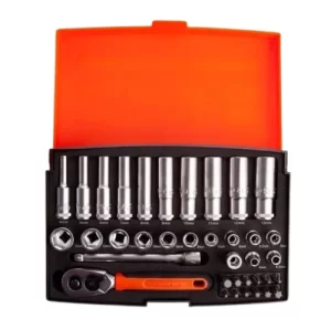 Juego 34 piezas dados 3/8” bi-hexagonales con chicharra ERGO™ – Bahco 7429JDE